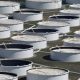 © Reuters. FILE PHOTO: Crude oil storage tanks are seen from above at the Cushing oil hub, appearing to run out of space to contain a...