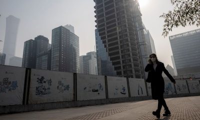 © Reuters. A woman walks in the Central Business District (CBD) on a hazy morning in Beijing, China, October 25, 2021. REUTERS/Thomas Peter/File Photo BEIJING, China...
