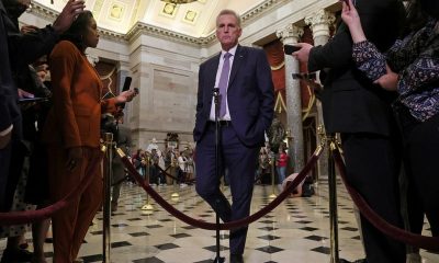 © Reuters. FILE PHOTO: U.S. House Speaker Kevin McCarthy speaks to members of the media as the deadline to avert a government shutdown approaches on Capitol...