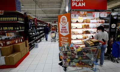 2/2 © Reuters. FILE PHOTO: A sign reading “Anti-inflation challenge, second price cut” is seen near shelves at a supermarket in Nice, France, June 15, 2023....