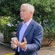 © Reuters. FILE PHOTO: Philadelphia Federal Reserve Bank President Patrick Harker speaks with CNBC’s Steve Liesman (not pictured) after an interview ahead of the annual Kansas...