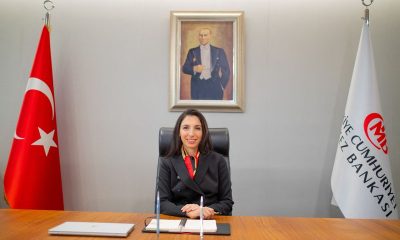 © Reuters. Turkey’s Central Bank Governor Hafize Gaye Erkan poses in her office in Ankara, Turkey, July 6, 2023. Central Bank of Turkey/Handout via REUTERS/File photo...