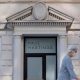© Reuters. A worker decorates the Frankfurt stock exchange with Nucera logos for the upcoming IPO of Thyssenkrupp’s hydrogen division Nucera as the German share price...