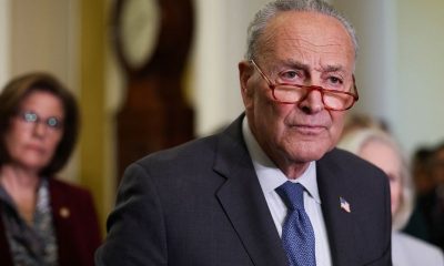 © Reuters. FILE PHOTO: U.S. Senate Majority Leader Chuck Schumer (D-NY) looks on during the weekly Democratic Senate press conference on Capitol Hill in Washington, U.S.,...