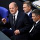 © Reuters. FILE PHOTO: Chancellor Olaf Scholz speaks next to Finance Minister Christian Lindner and Economy and Climate Minister Robert Habeck during a hearing at Germany’s...