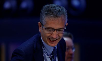 © Reuters. FILE PHOTO: Bank of Spain Governor Pablo Hernandez de Cos takes part in a panel on the third day of the annual meeting of...