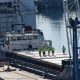 3/3 © Reuters. Members of the crew and port personnel inspect the cargo ship loaded with humanitarian aid for Gaza in the port of Larnaca, Cyprus...