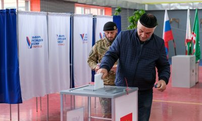 © Reuters. A man casts his ballot at a polling station during the presidential election in the Chechen capital Grozny, Russia, March 16, 2024. REUTERS/Chingis Kondarov...