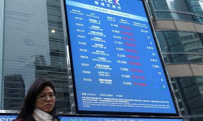 © Reuters. A woman walks in front of a screen displaying Evergrande’s stock prices among others outside the Exchange Square, after a court ordered the liquidation...