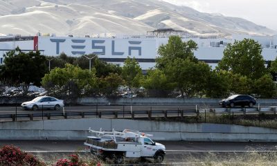 © Reuters. FILE PHOTO: Motorists drive past Tesla’s primary vehicle factory after CEO Elon Musk announced he was defying local officials’ restrictions against the spread of...