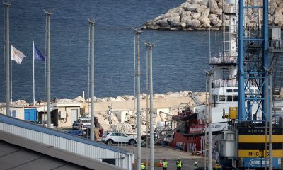 3/3 © Reuters. Workers stand near a rescue vessel of the Spanish NGO Open Arms at the port of Larnaca, Cyprus March 9, 2024. REUTERS/Yiannis Kourtoglou...