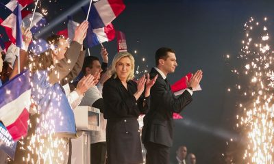 5/5 © Reuters. President of the French far-right National Rally (Rassemblement National-RN) party Jordan Bardella and Marine Le Pen, parliamentary party leader of the French far-right...