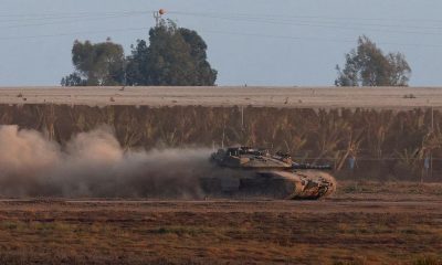 5/5 © Reuters. A tank maneuvres near the Israel-Gaza border, amid the ongoing conflict between Israel and Palestinian Islamist group Hamas, as seen from Southern Israel,...