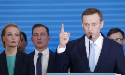 © Reuters. FILE PHOTO: Russian opposition leader Alexei Navalny and his wife Yulia attend a meeting to uphold his bid for presidential candidate, in Moscow, Russia...