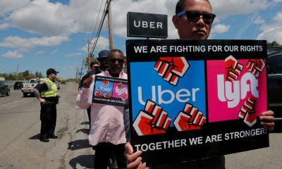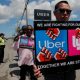 © Reuters. FILE PHOTO: Uber and Lyft drivers protest during a day-long strike outside Uber’s office in Saugus, Massachusetts, U.S., May 8, 2019. REUTERS/Brian Snyder By...