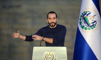 © Reuters. FILE PHOTO: El Salvador’s President Nayib Bukele speaks during the inauguration of the Vijosa pharmaceutical plant in Santa Tecla, El Salvador November 20, 2023....