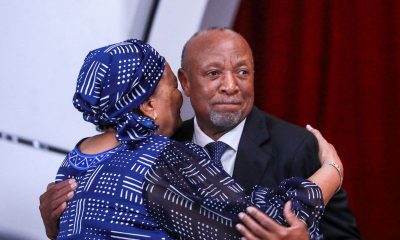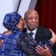 5/5 © Reuters. Namibia’s newly appointed President Nangolo Mbumba and his wife, Sustjie Mbumba embrace each other, following the death of Hage Geingob, in Windhoek, Namibia,...