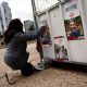 5/5 © Reuters. Dahlia Cooper hangs a picture of her father-in-law Amiram Cooper, who was kidnapped on the deadly October 7 attack by Palestinian Islamist group...