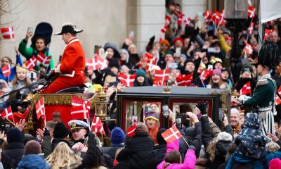 7/7 © Reuters. People gather around a horse-drawn carriage which carries Danish Queen Margrethe on her way to Christiansborg Palace, on the day she abdicates after...