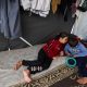 5/5 © Reuters. Laila Al-Sultan, a displaced Palestinian girl who was wounded in an Israeli strike that killed her father, plays with her brother Khaled inside...