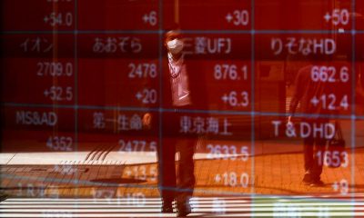 © Reuters. A man is reflected on an electric stock quotation board outside a brokerage in Tokyo, Japan April 18, 2023. REUTERS/Issei Kato/File Photo By Naomi...