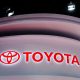 © Reuters. FILE PHOTO: The Toyota logo is seen at its booth during a media day for the Auto Shanghai show in Shanghai, China April 19,...