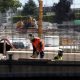 © Reuters. FILE PHOTO: Workers are seen at the construction site of the Austerlitz basin, a water storage reservoir for wastewater and rainwater, build to improve...