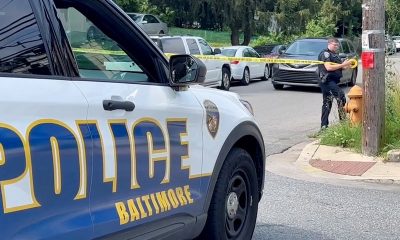 © Reuters. A police officer secures crime scene tape to a pole after a mass shooting at the scene of a Fourth of July holiday weekend...