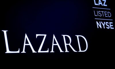 © Reuters. FILE PHOTO: The logo and trading information for Lazard Ltd appear on a screen on the floor at the New York Stock Exchange (NYSE)...