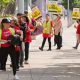 4/4 © Reuters. People protest in front of Hotel Indigo as unionized hotel workers in Los Angeles and Orange County go on strike, in Los Angeles,...
