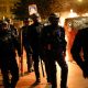 5/5 © Reuters. A group of police officers walk as people protest following the death of Nahel, a 17-year-old teenager killed by a French police officer...