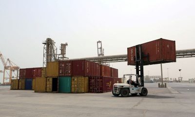 © Reuters. FILE PHOTO: A forklift carries a shipping container at the Red Sea port of Hodeidah, Yemen June 24, 2018. REUTERS/Abduljabbar Zeyad/File Photo By Marwa...