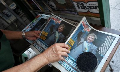 © Reuters. A kiosk owner rearranges newspapers, one day after the inauguration of Argentina’s President Javier Milei and his Vice President Victoria Villarruel, in Buenos Aires,...