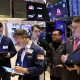 © Reuters. FILE PHOTO: Traders gather at the post that trades Alaska Airlines stock on the floor at the New York Stock Exchange (NYSE) in New...