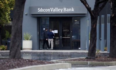 2/2 © Reuters. FILE PHOTO: A man puts a sign on the door of the Silicon Valley Bank as an onlooker watches at the bank?s headquarters...
