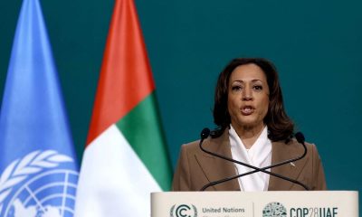 3/3 © Reuters. U.S. Vice President Kamala Harris speaks during the United Nations Climate Change Conference COP28, in Dubai, United Arab Emirates, December 2, 2023. REUTERS/Amr...