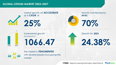 NEW YORK, June 21, 2023 /PRNewswire/ — The global lithium market size is estimated to increase by 1066.47 thousand t from 2022 to 2027. The market’s...