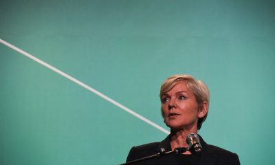 © Reuters. FILE PHOTO: U.S. Secretary of Energy Jennifer Granholm delivers a speech ahead of a conversation with Daniel Yergin, the vice chairman of S&P Global,...