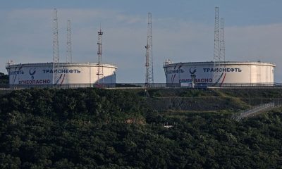 © Reuters. FILE PHOTO: A view shows oil tanks of Transneft oil pipeline operator at the crude oil terminal Kozmino on the shore of Nakhodka Bay...