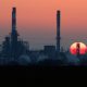 © Reuters. The sun sets behind the chimneys of the Total Grandpuits oil refinery, southeast of Paris, France, March 1, 2021. REUTERS/Christian Hartmann By Paul Carsten...