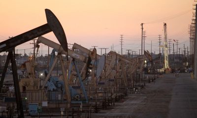 © Reuters. FILE PHOTO: Oil rig pumpjacks, also known as thirsty birds, extract crude from the Wilmington Field oil deposits area near Long Beach, California July...