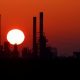 © Reuters. FILE PHOTO: The sun sets behind the chimneys of the Total Grandpuits oil refinery, southeast of Paris, France, March 1, 2021. REUTERS/Christian Hartmann/File Photo...